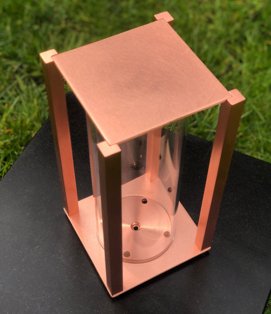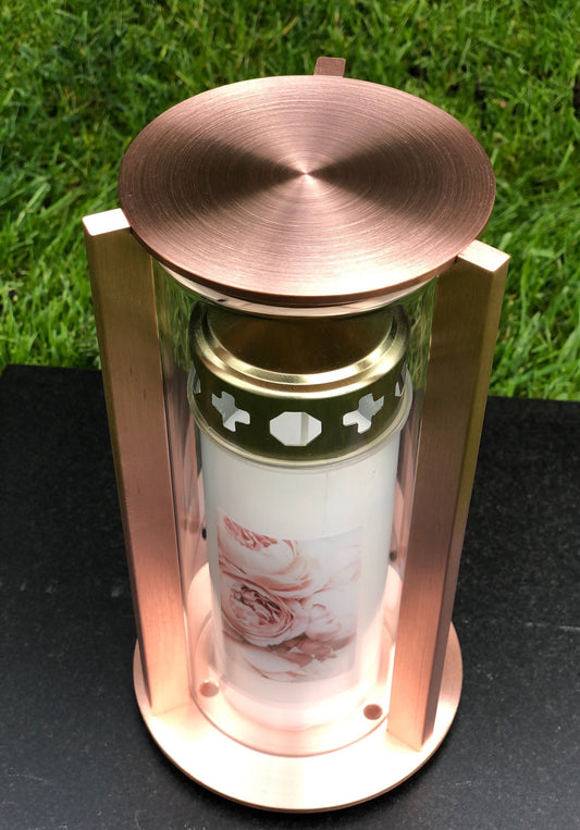 Grablaterne aus Kupfer Glas klar RE8MK 12x12x22cm