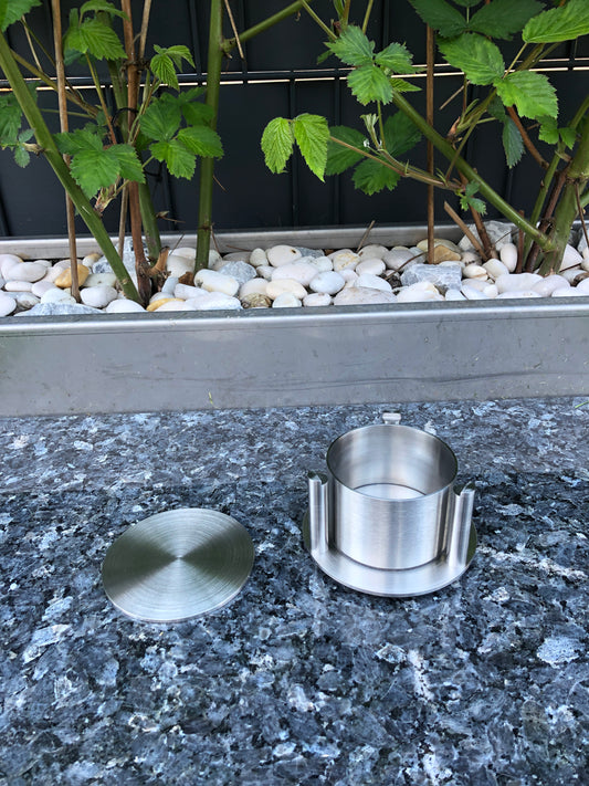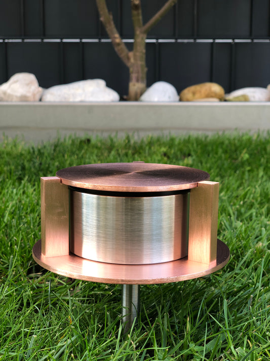 Weihwasserkessel aus Kupfer und Edelstahl mit Erdspieß W8GSK
