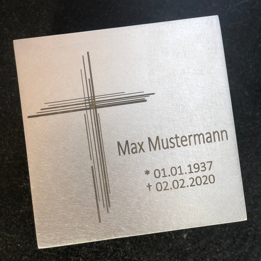 Grabschmuck Edelstahlwürfel mit Motiven und Schriften 11x11x11cm