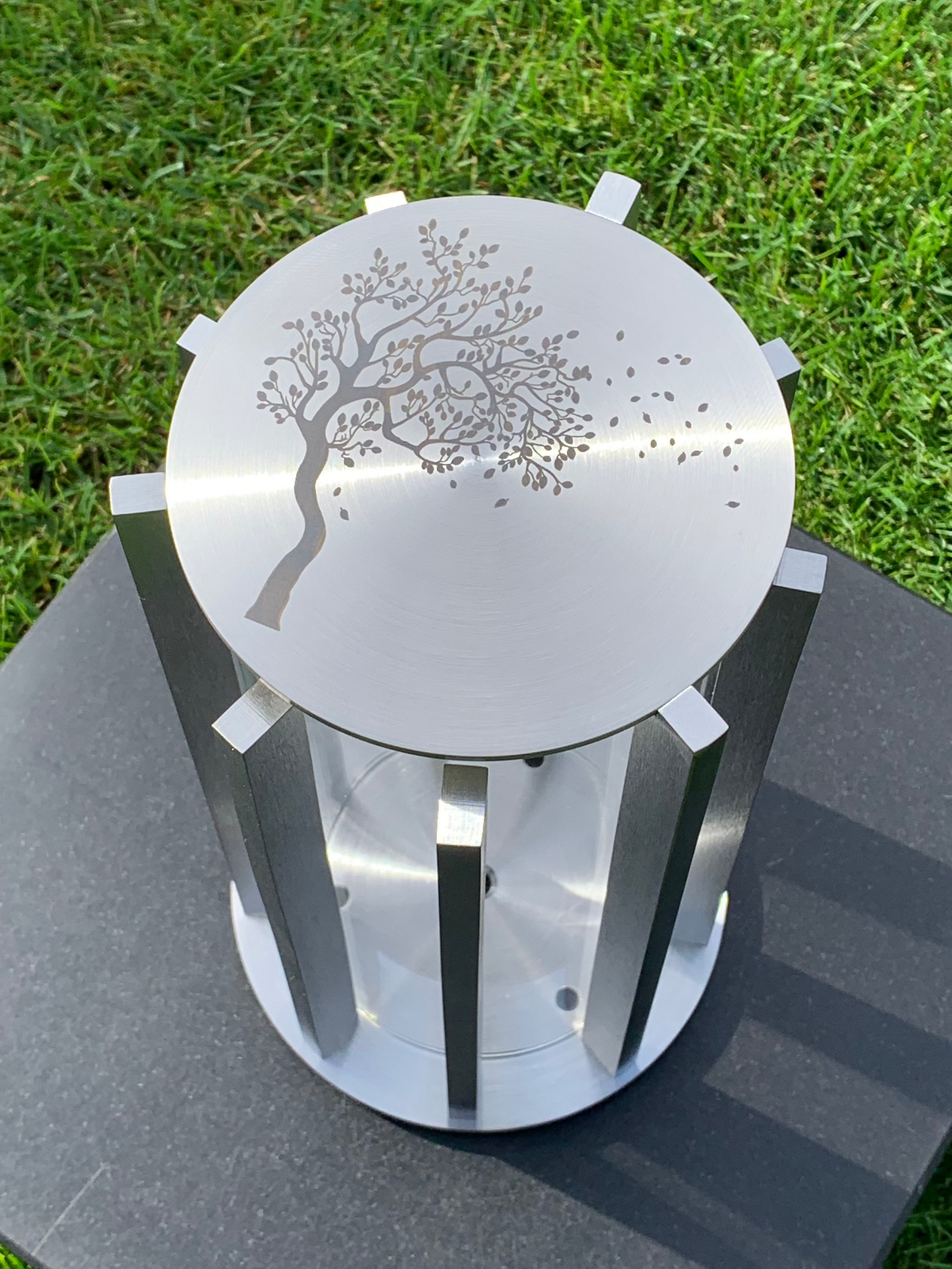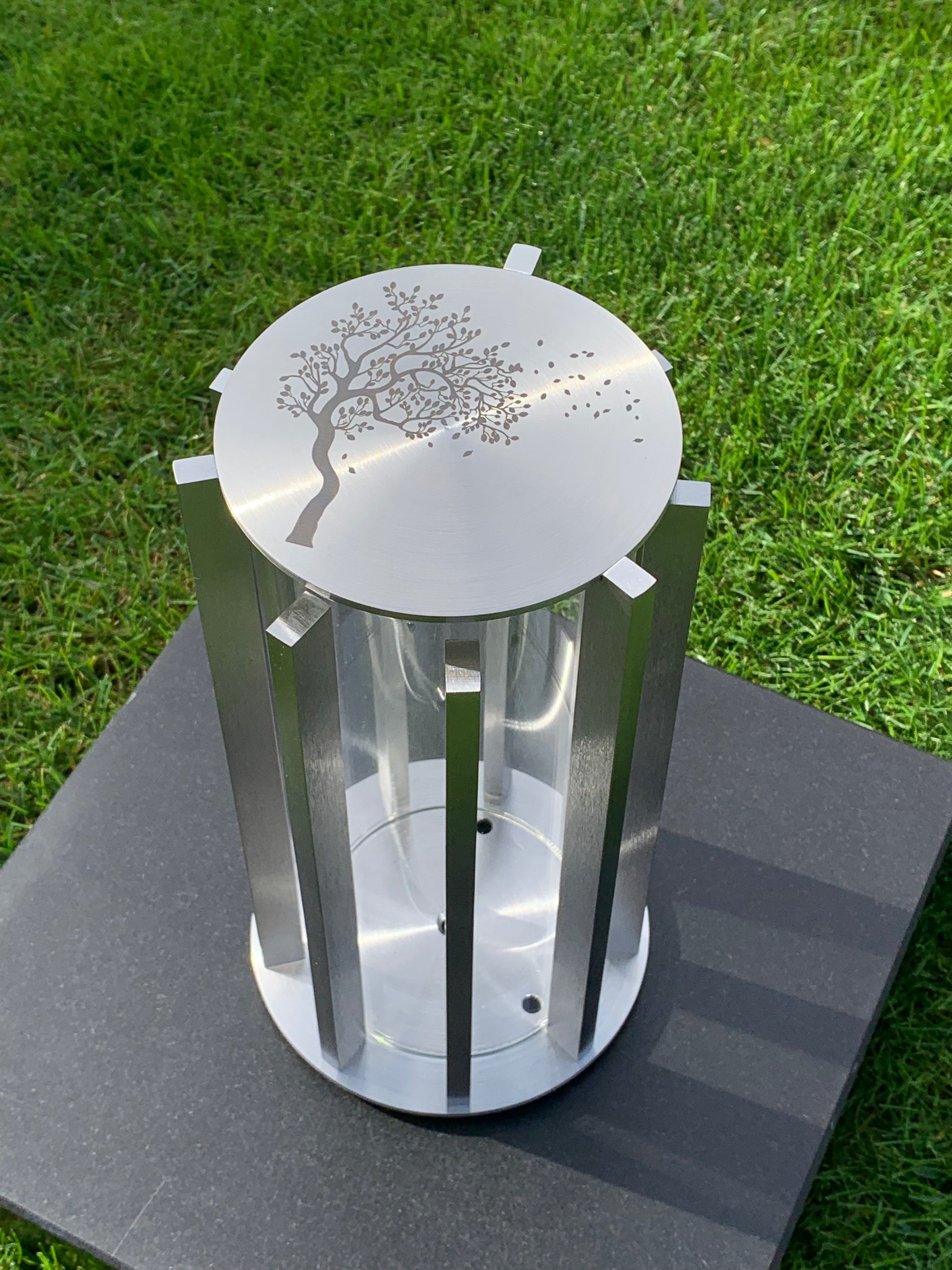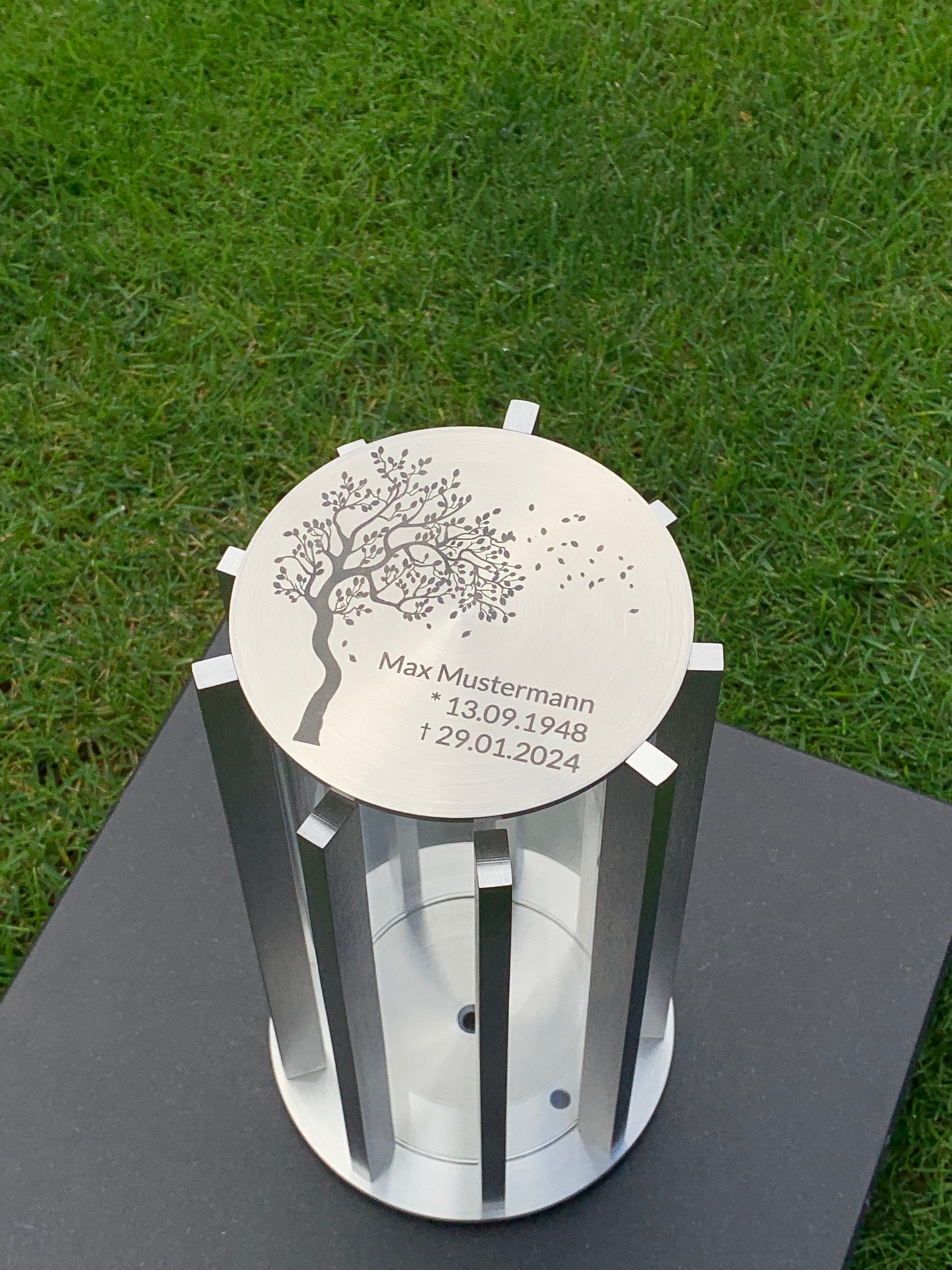 Hochwertige Design Grablaterne aus Edelstahl für eine moderne Grabgestaltung mit Gravur