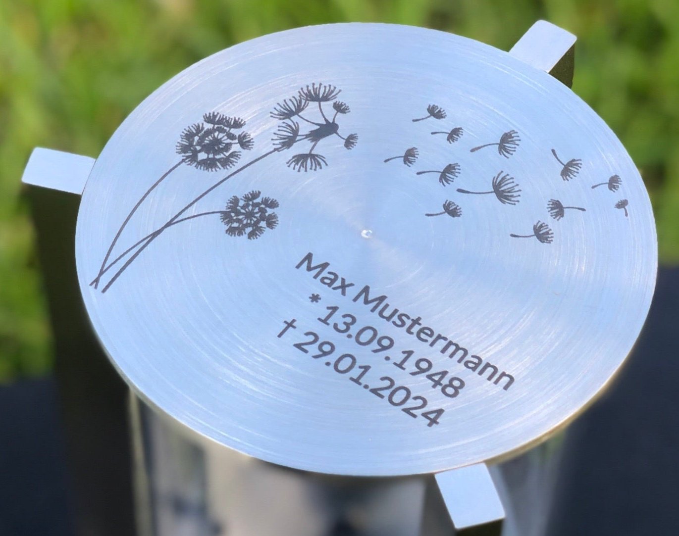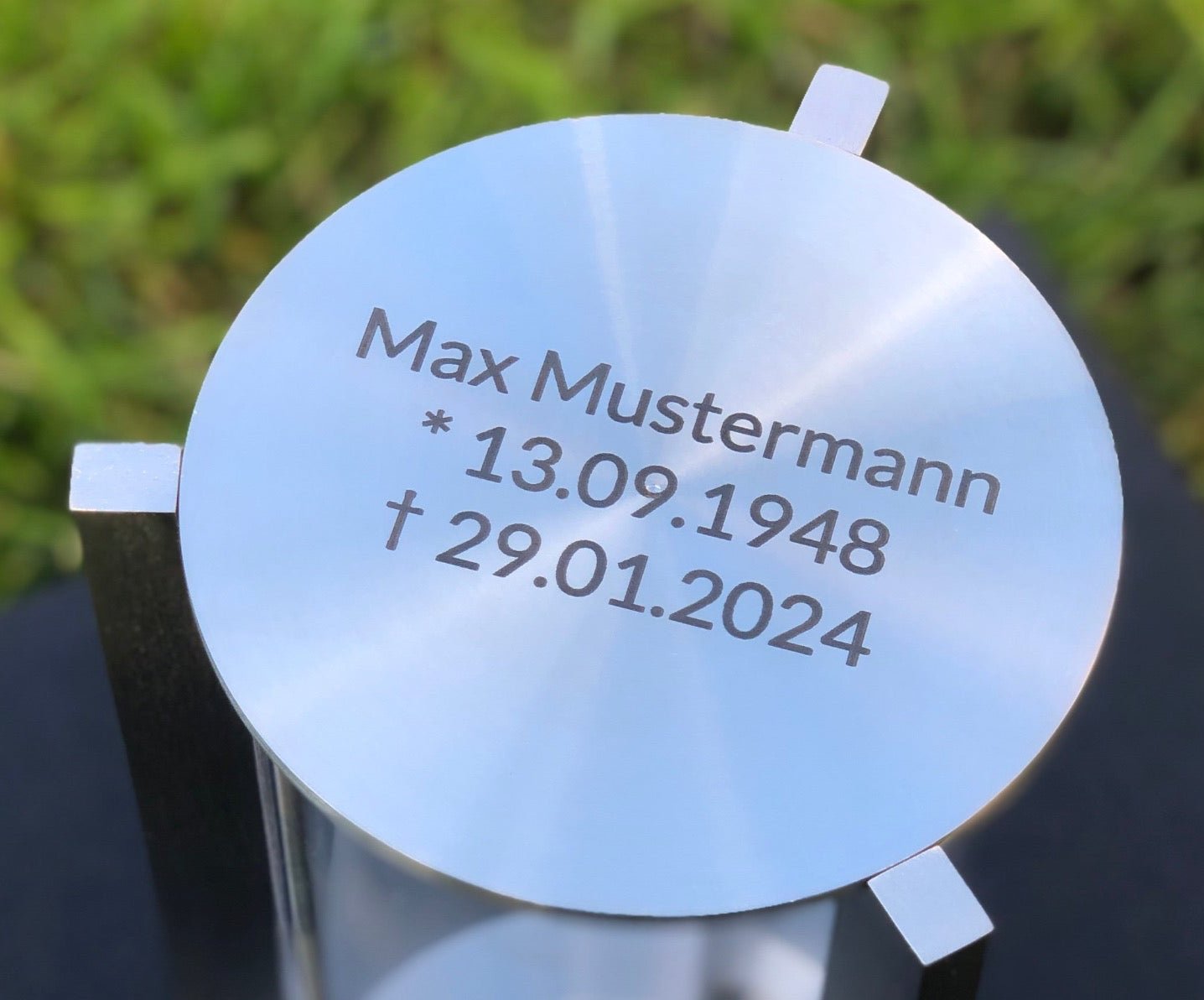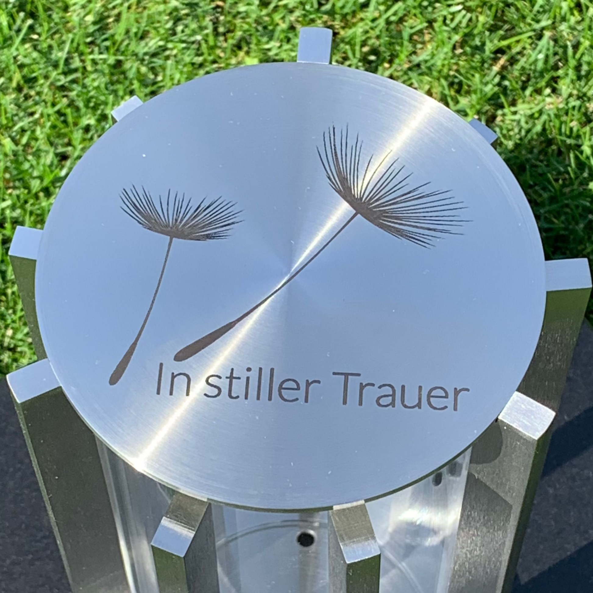 Hochwertige Design Grablaterne aus Edelstahl für eine moderne Grabgestaltung mit Gravur