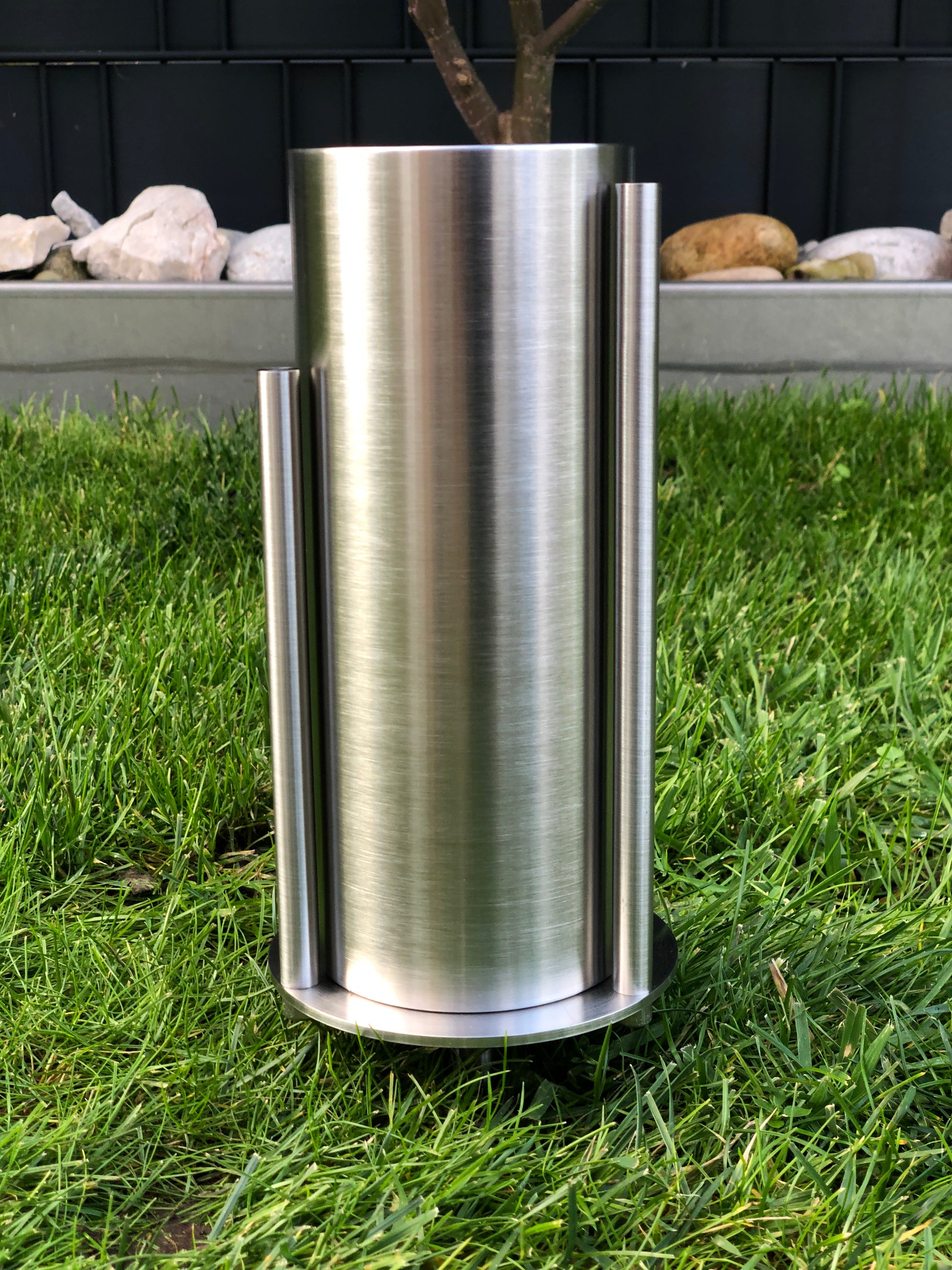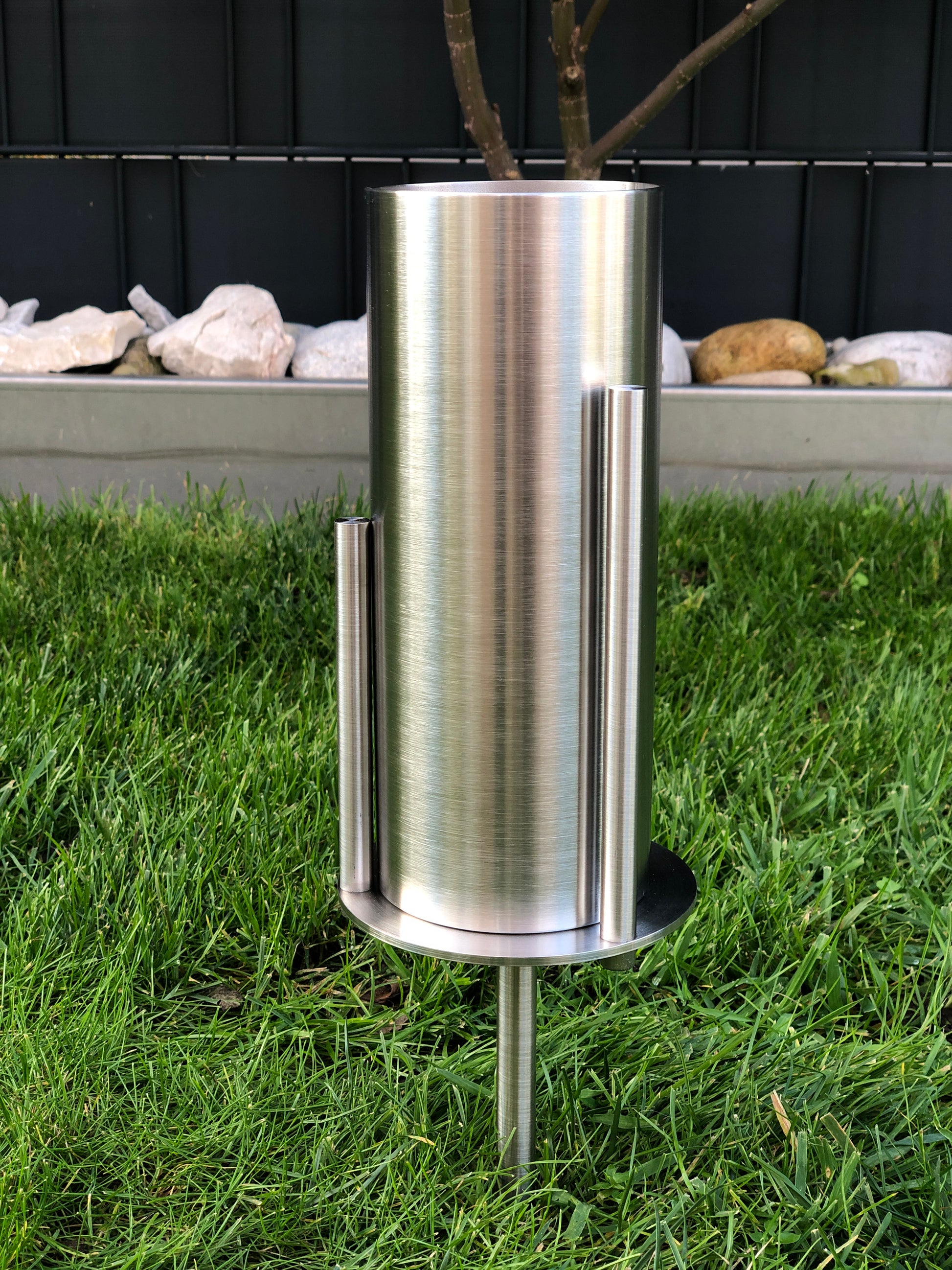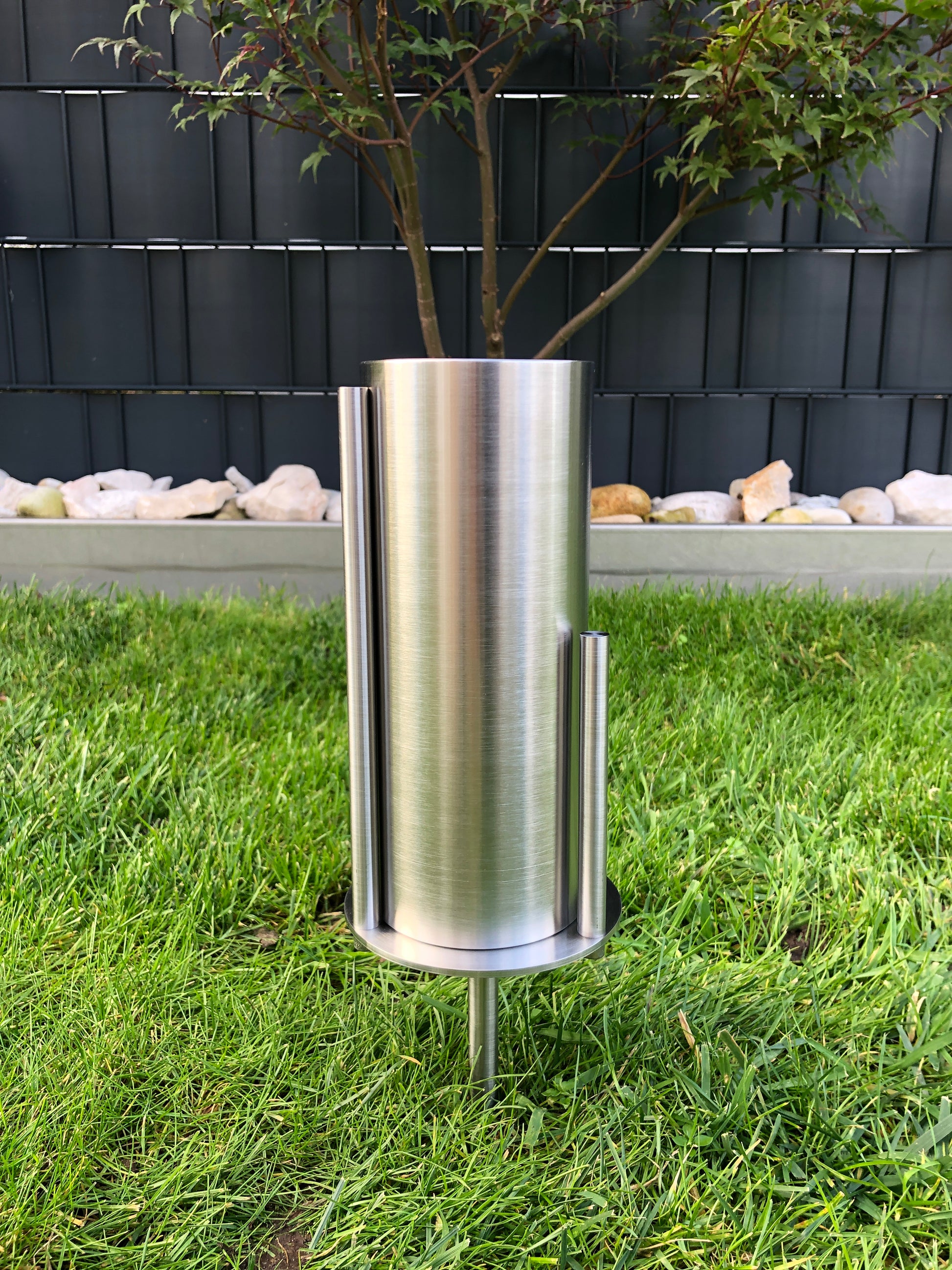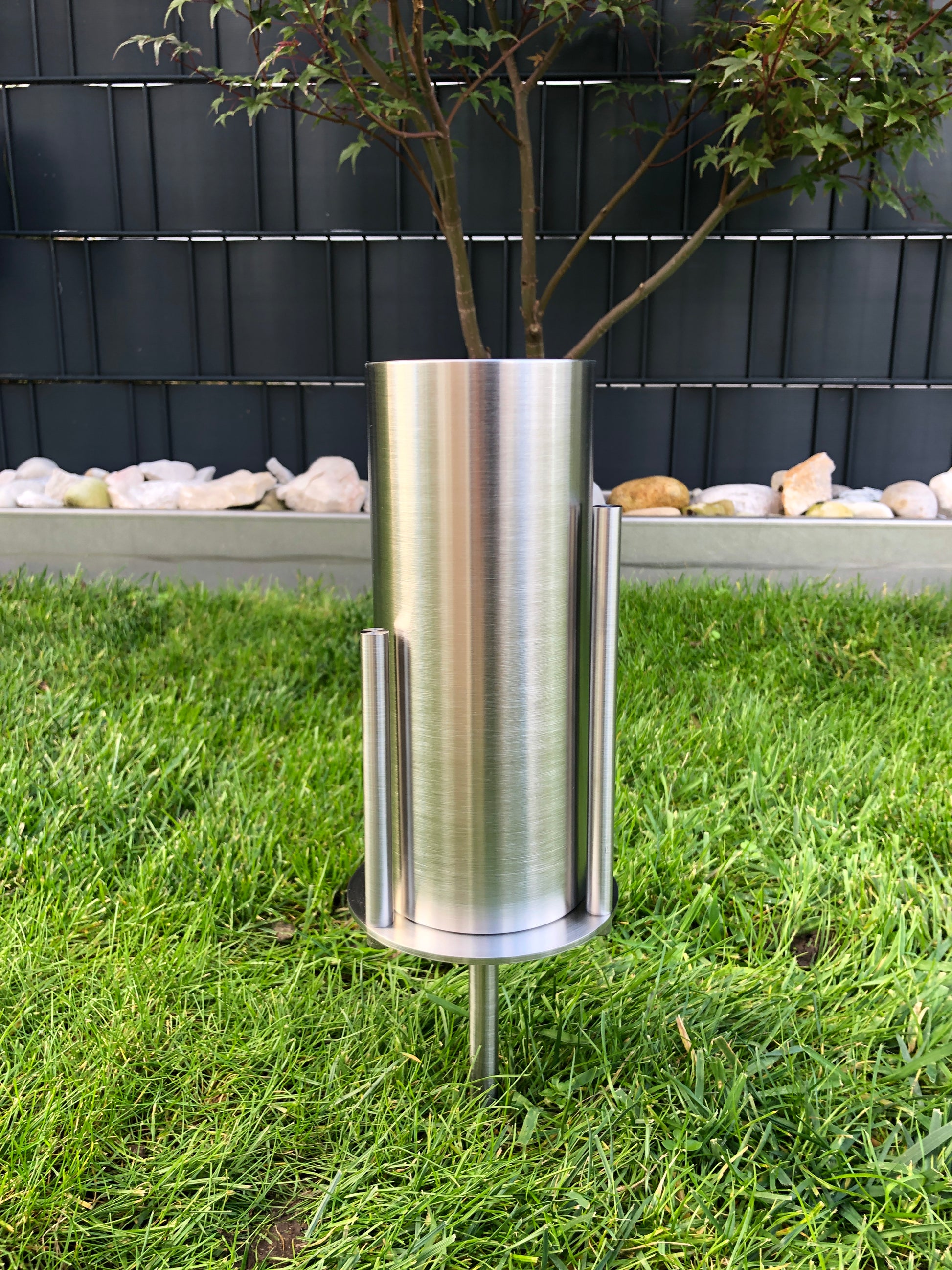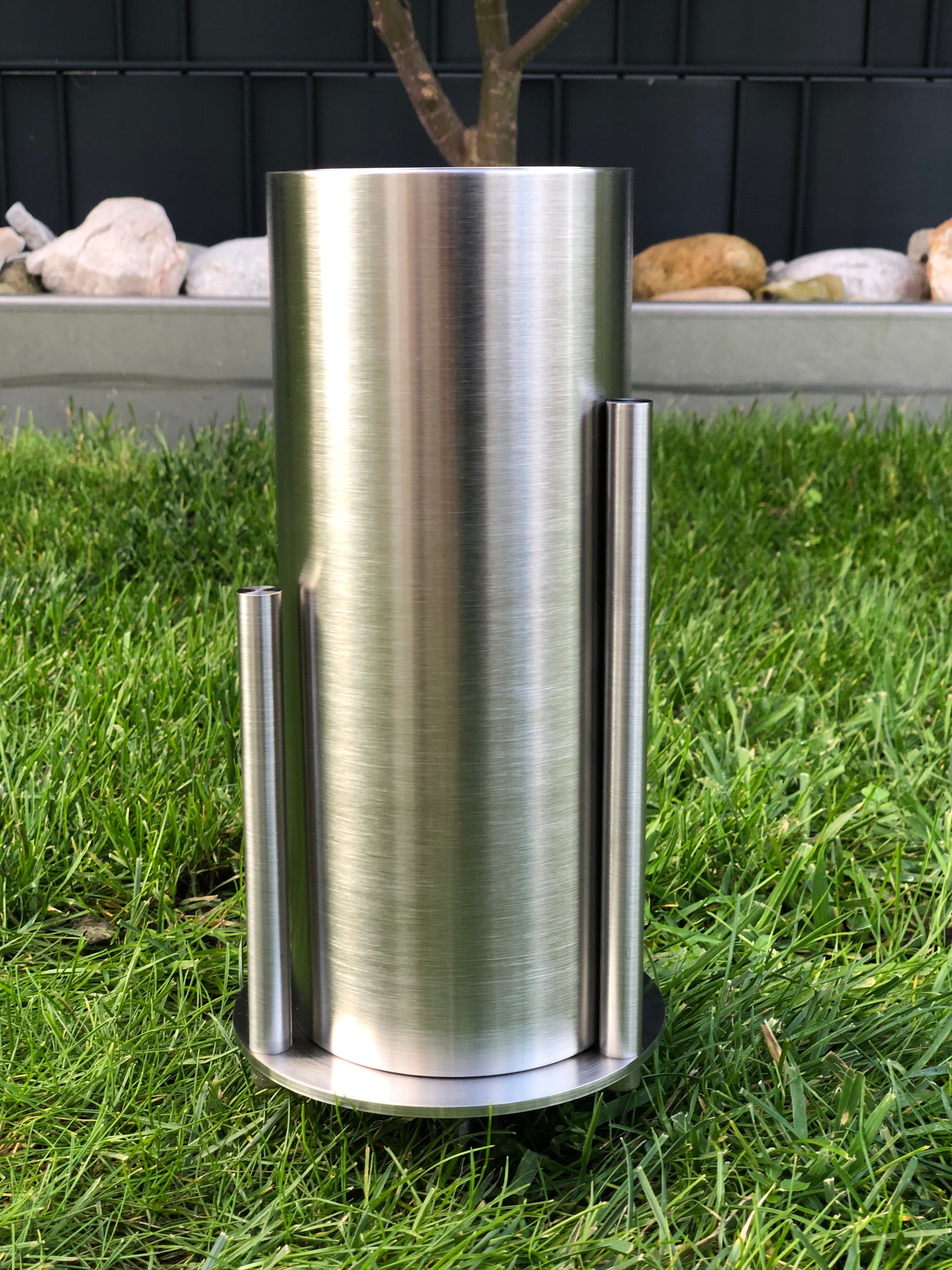 Hochwertige Grabvase aus Edelstahl mit Erdspieß für eine moderne Grabgestaltung