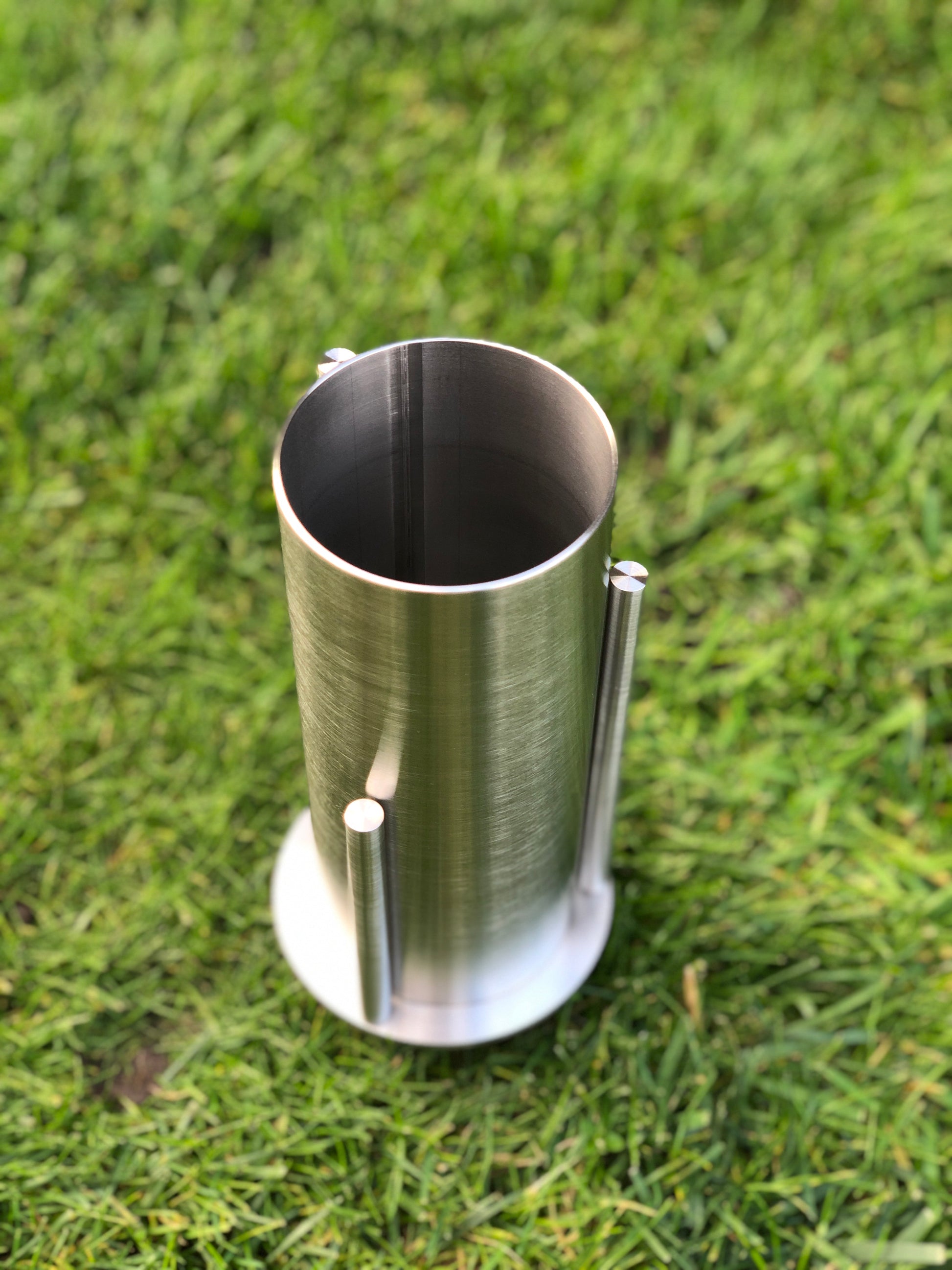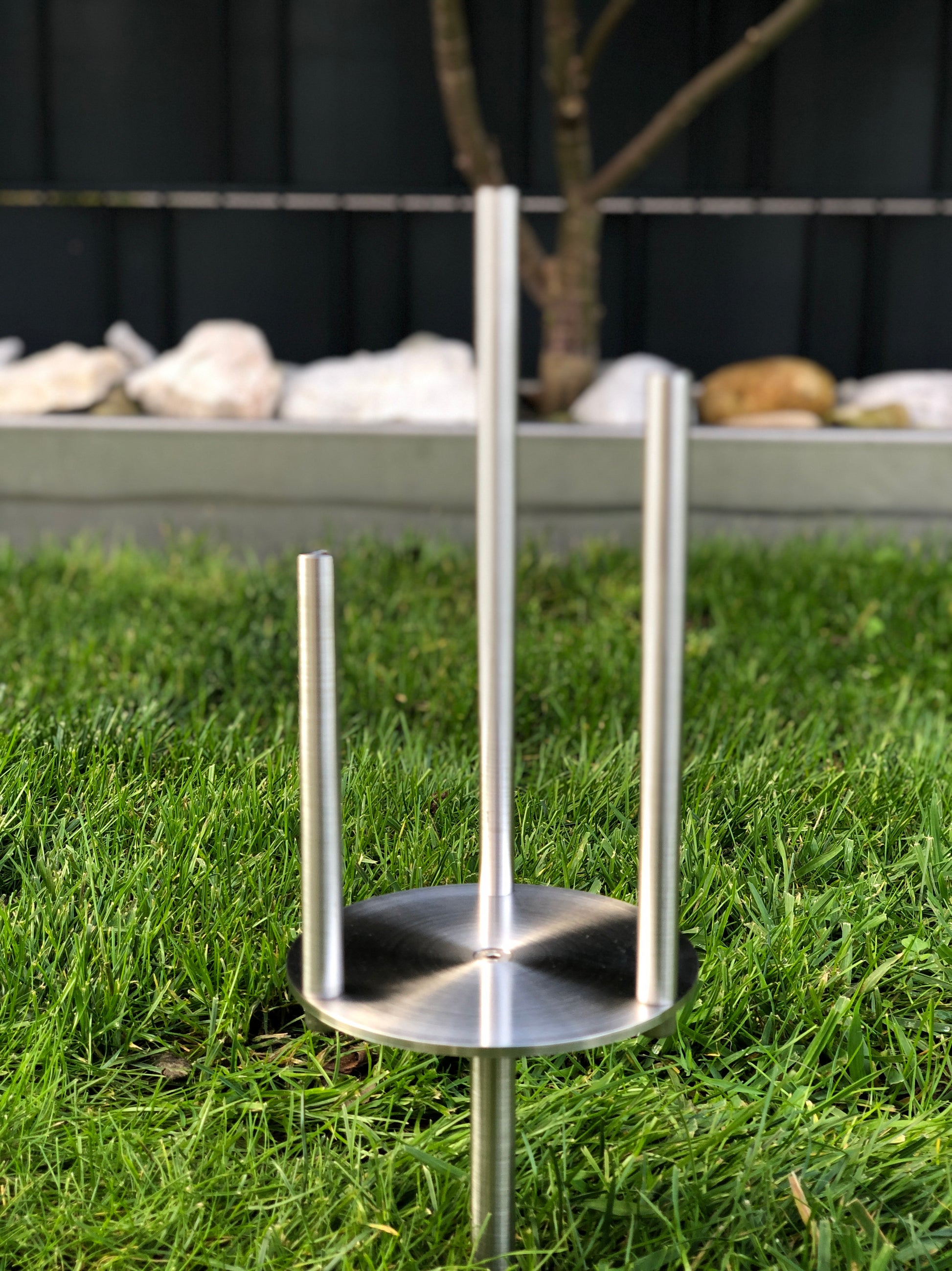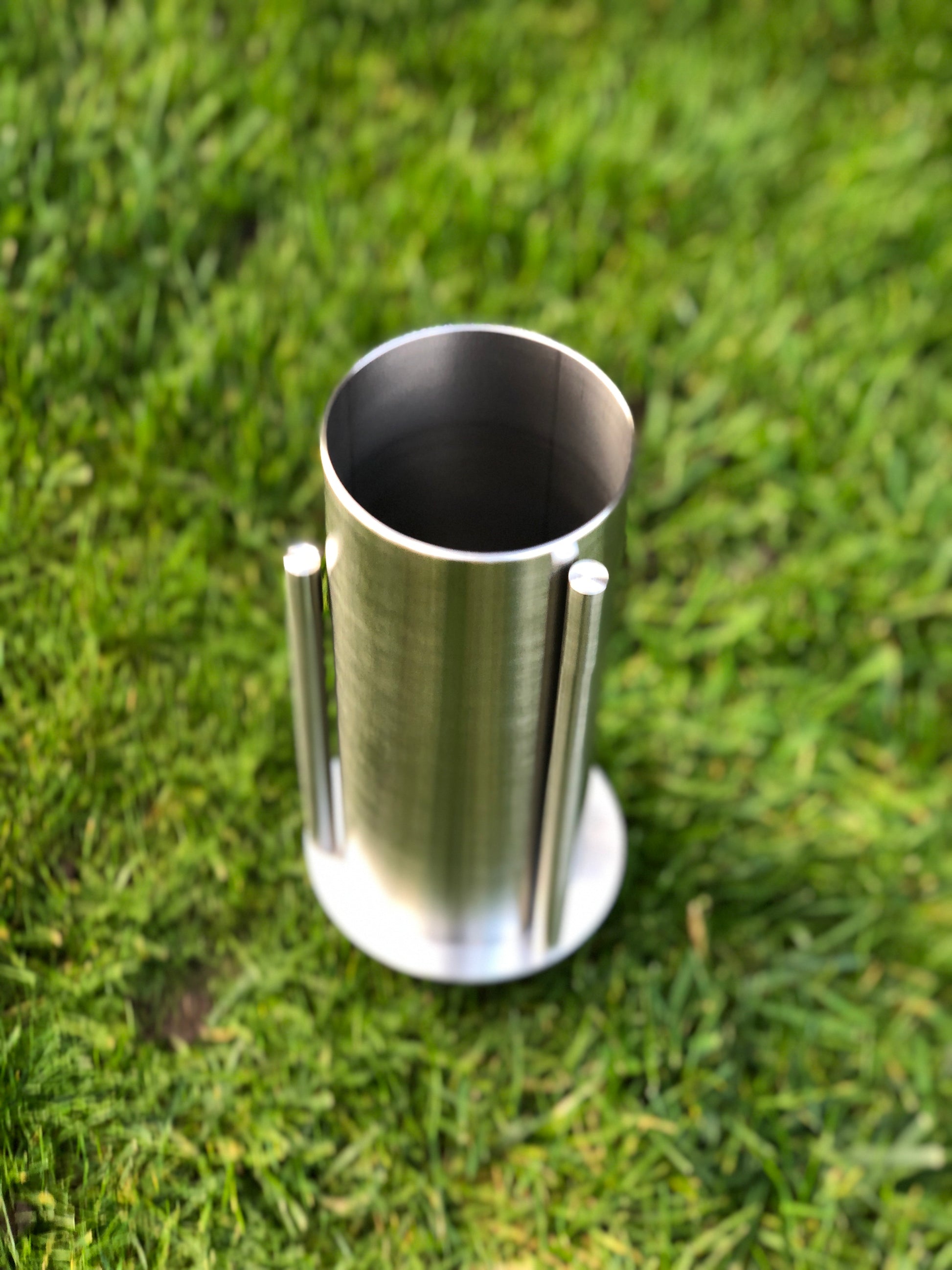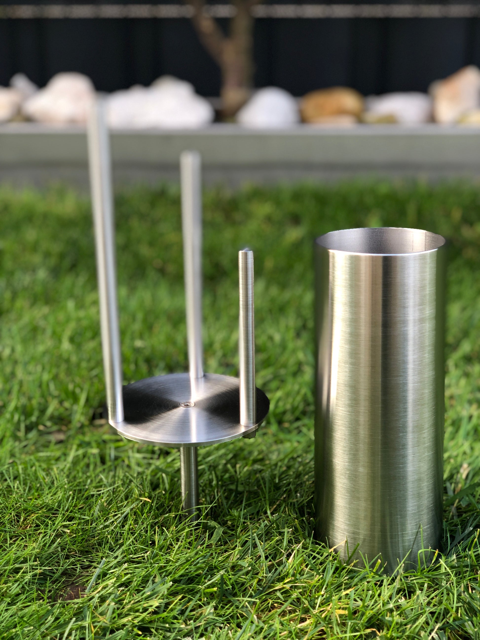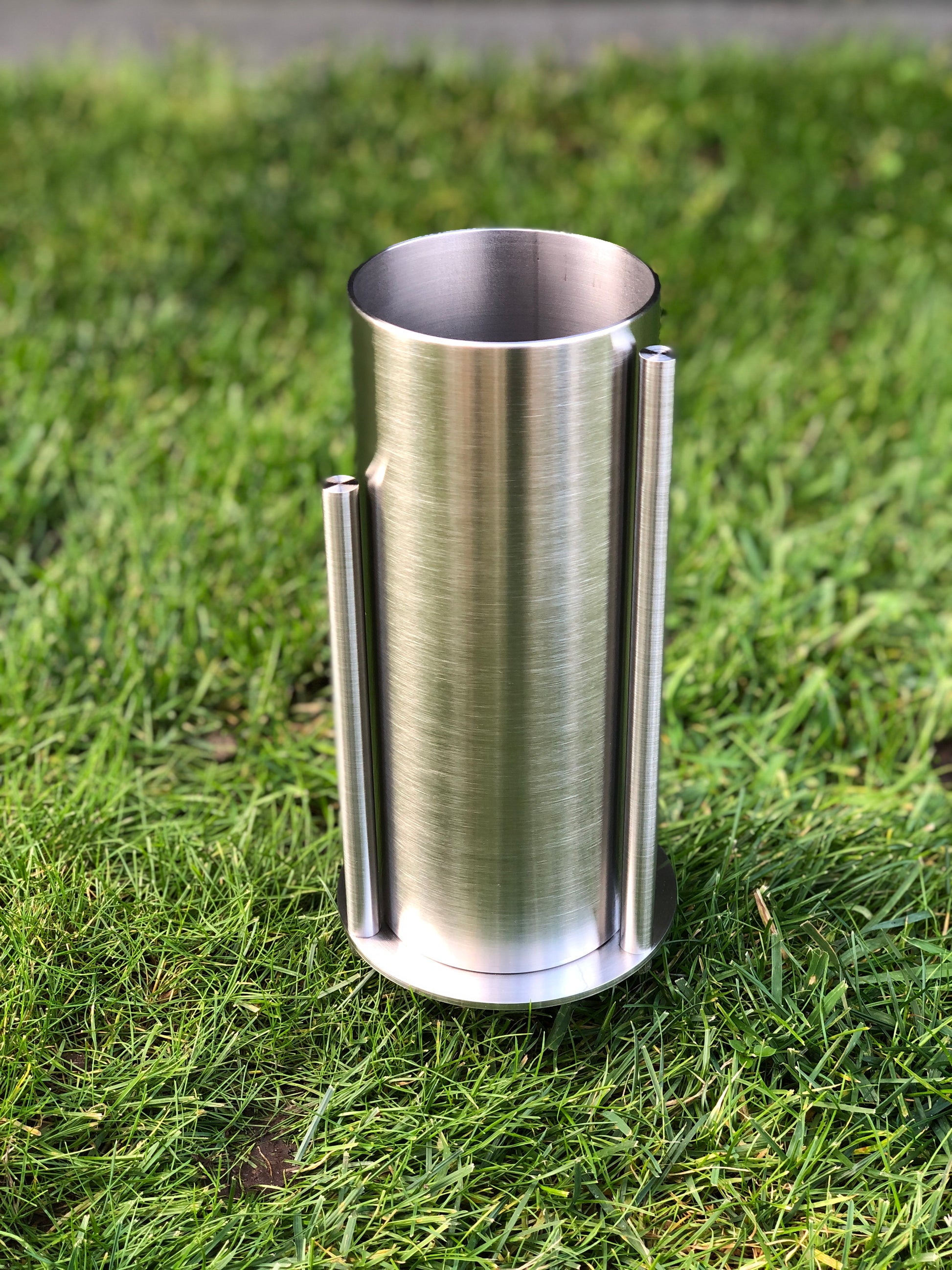 Hochwertige Grabvase aus Edelstahl mit Erdspieß für eine moderne Grabgestaltung