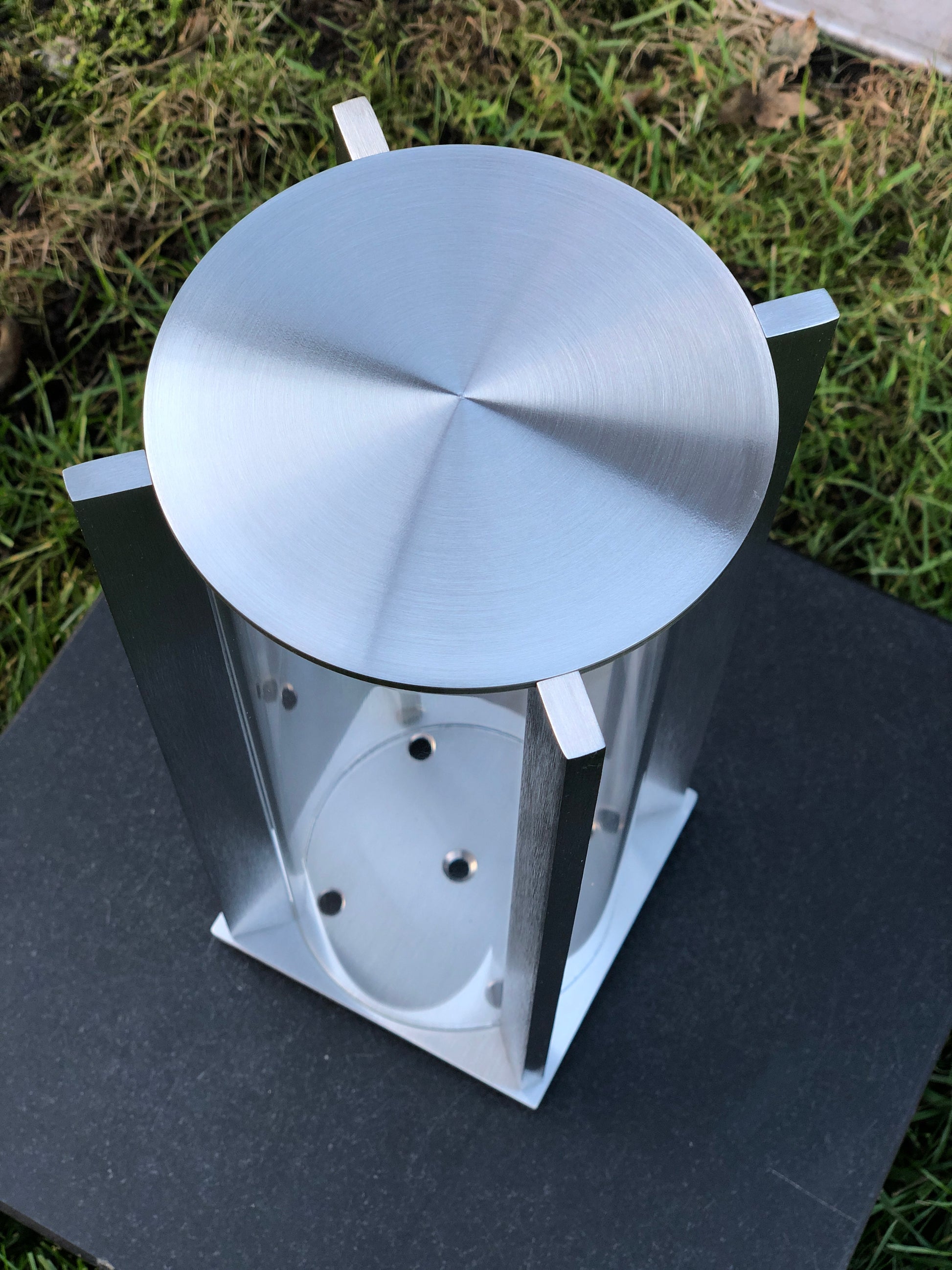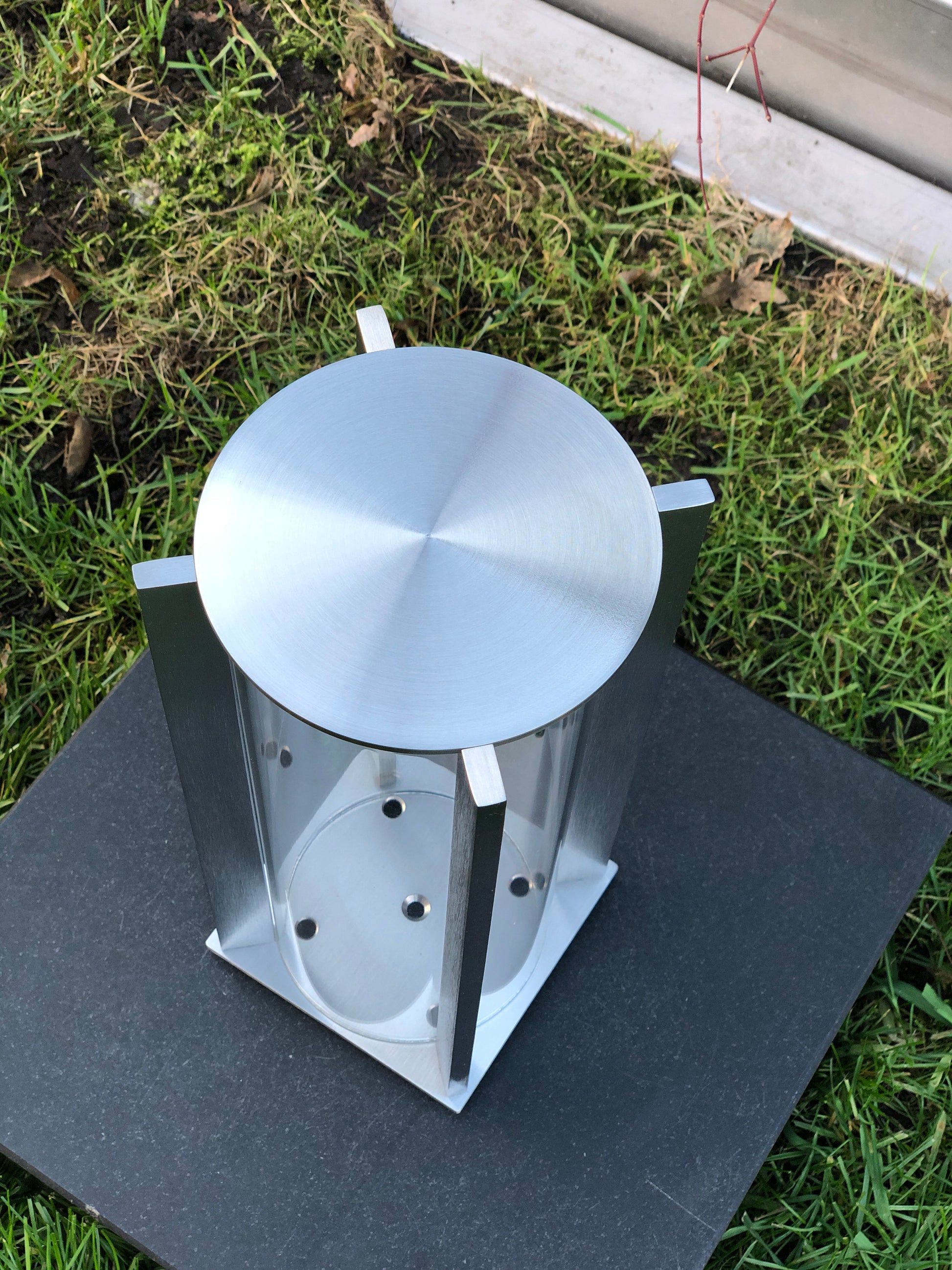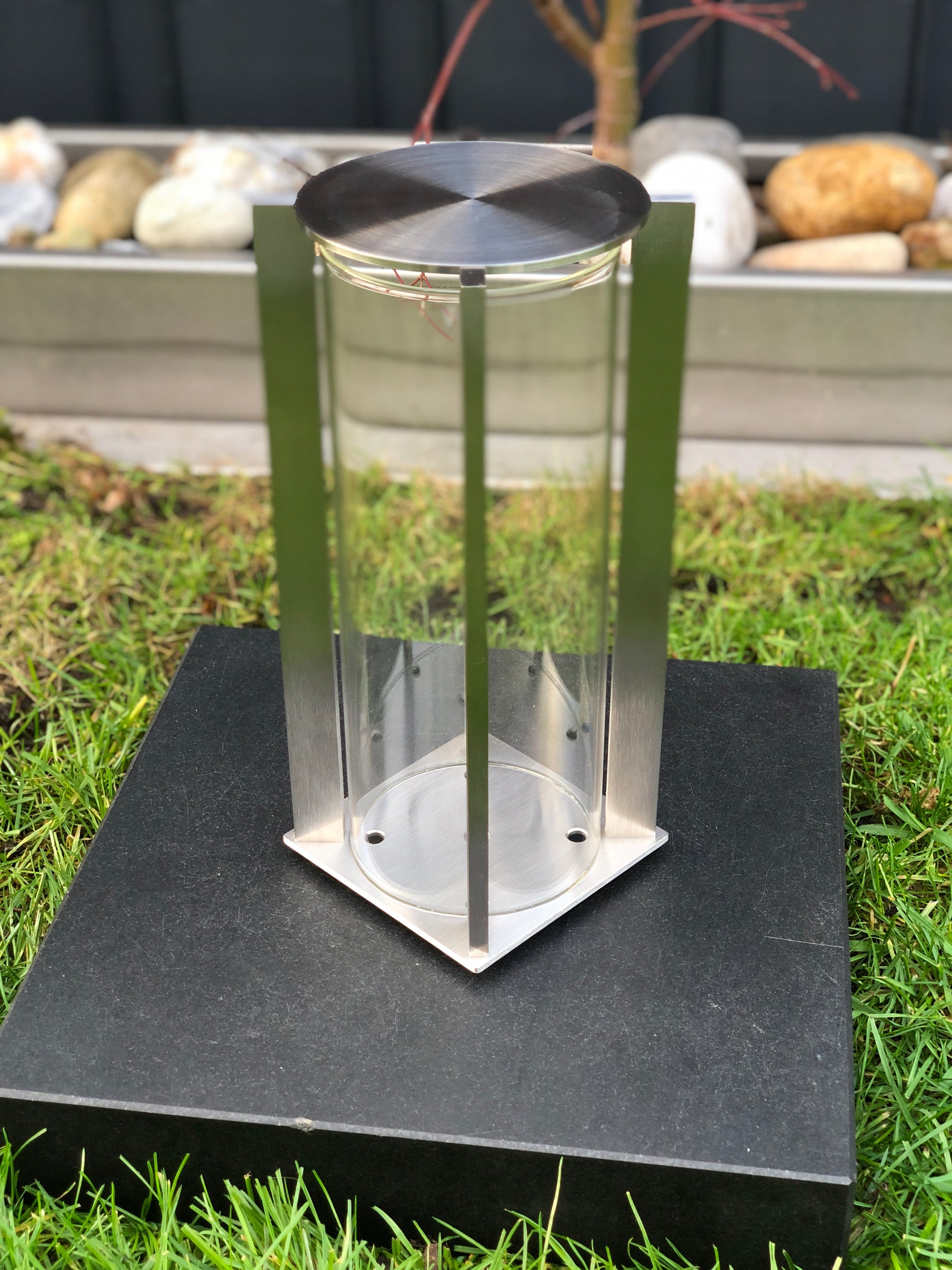 Zum Kerzen wechseln wird der Glaszylinder (Durchmesser 10cm Höhe 25cm) angehoben