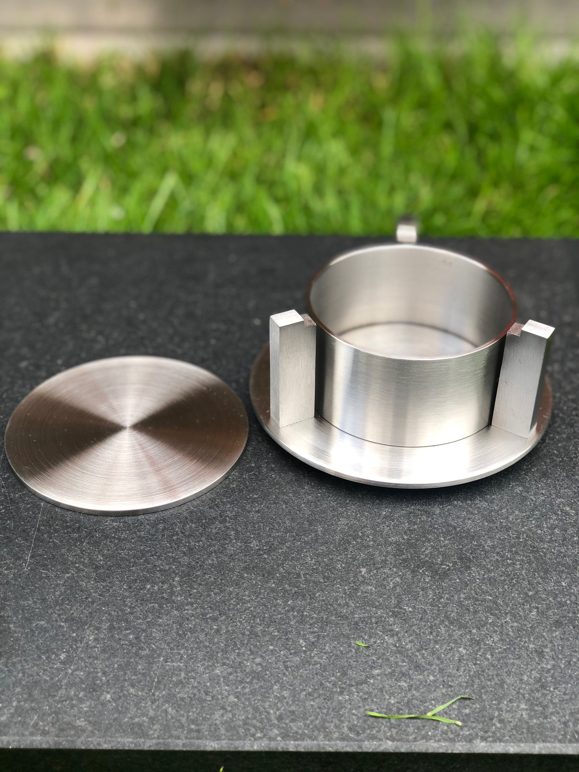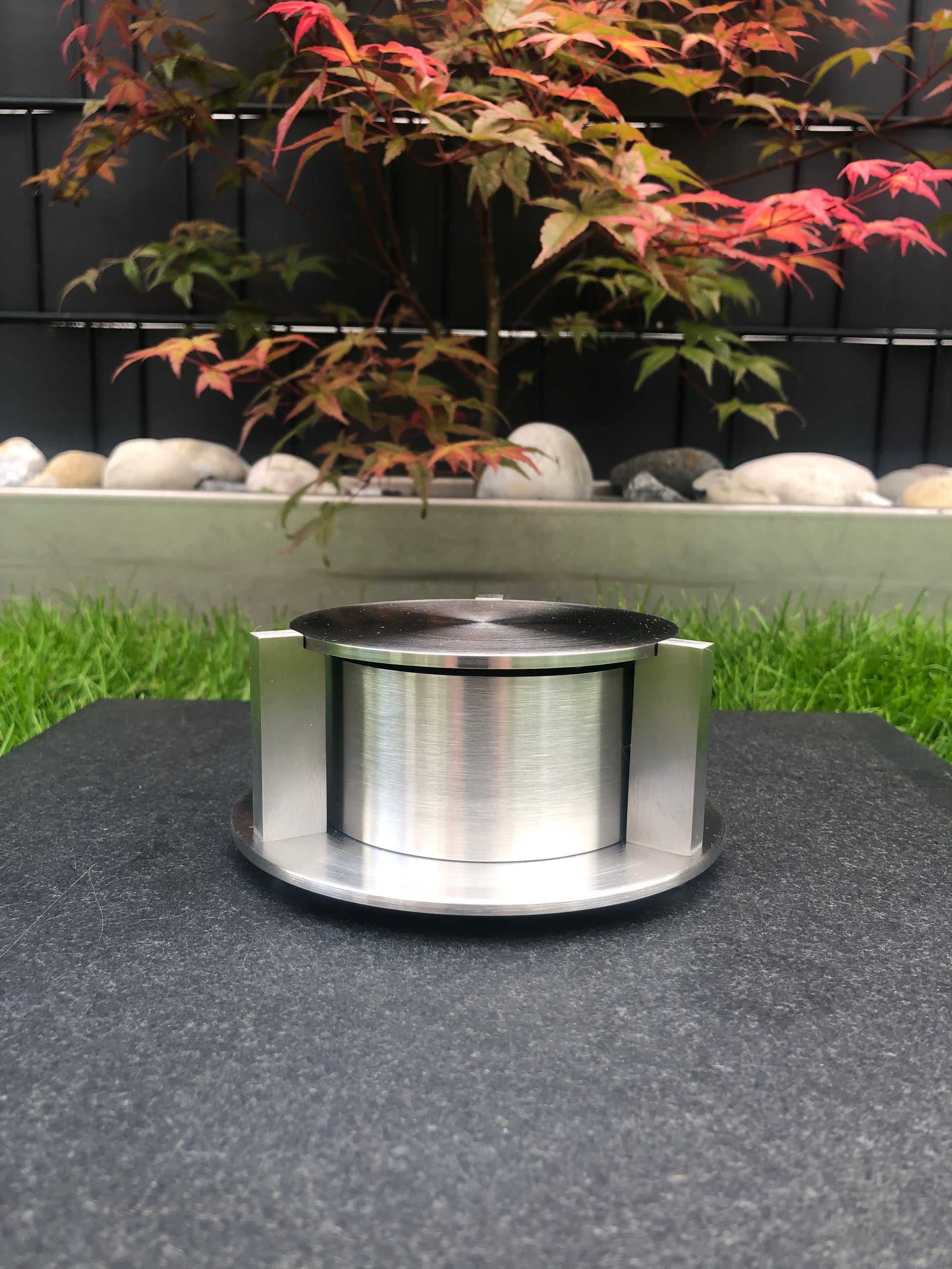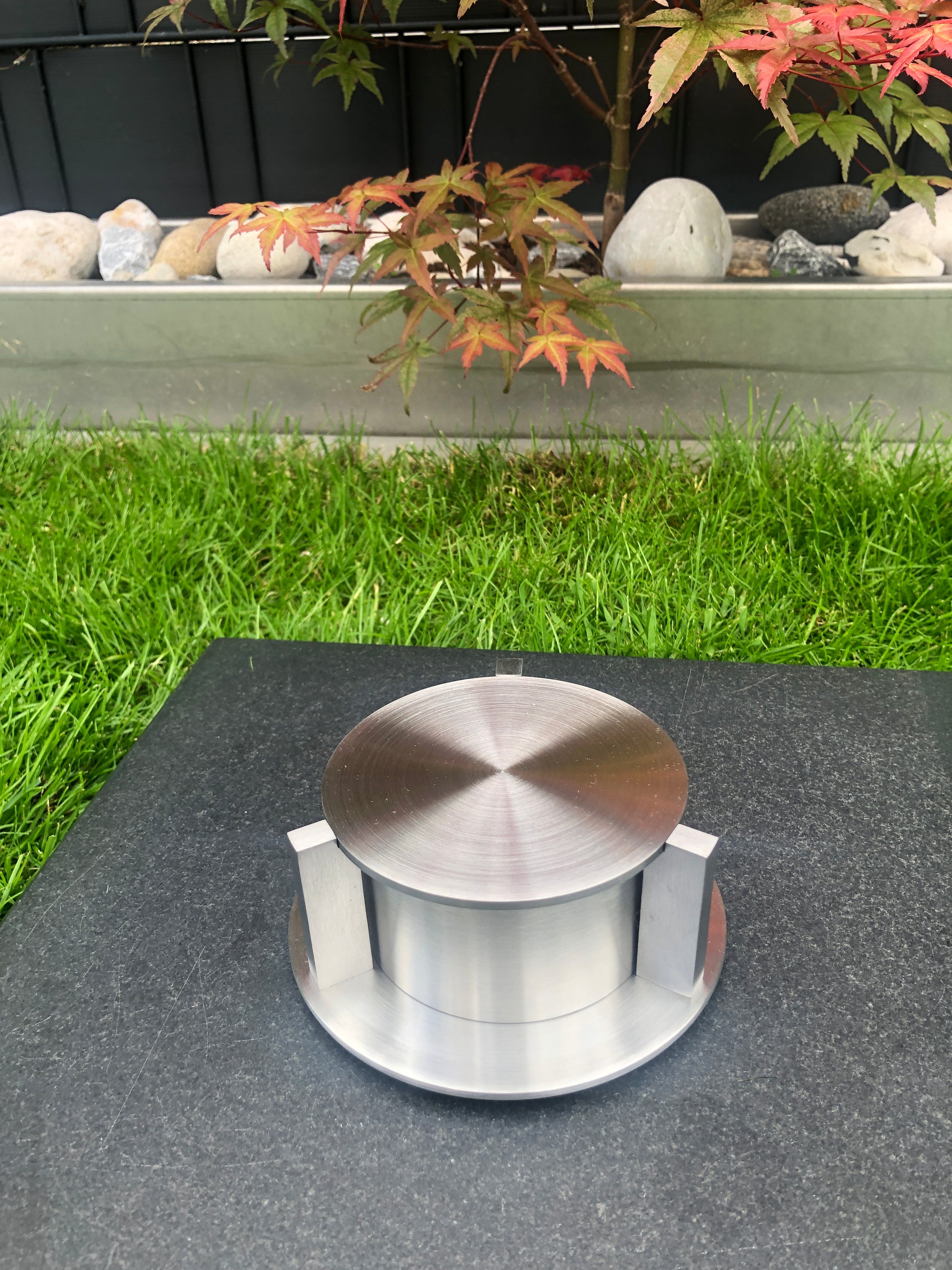 Dieser Weihwasserkessel wird aus ausschließlich hochwertigem Edelstahl in Handarbeit gefertigt. Durch die Fertigung aus Edelstahl wiedersteht dieser Kessel jeden Witterungseinfluss. Auf Wunsch kann der wertvolle Grabschmuck mit Hilfe von Schrauben oder Gewindestiften fest und diebstahlsicher mit einem geeigneten Untergrund verschraubt werden.