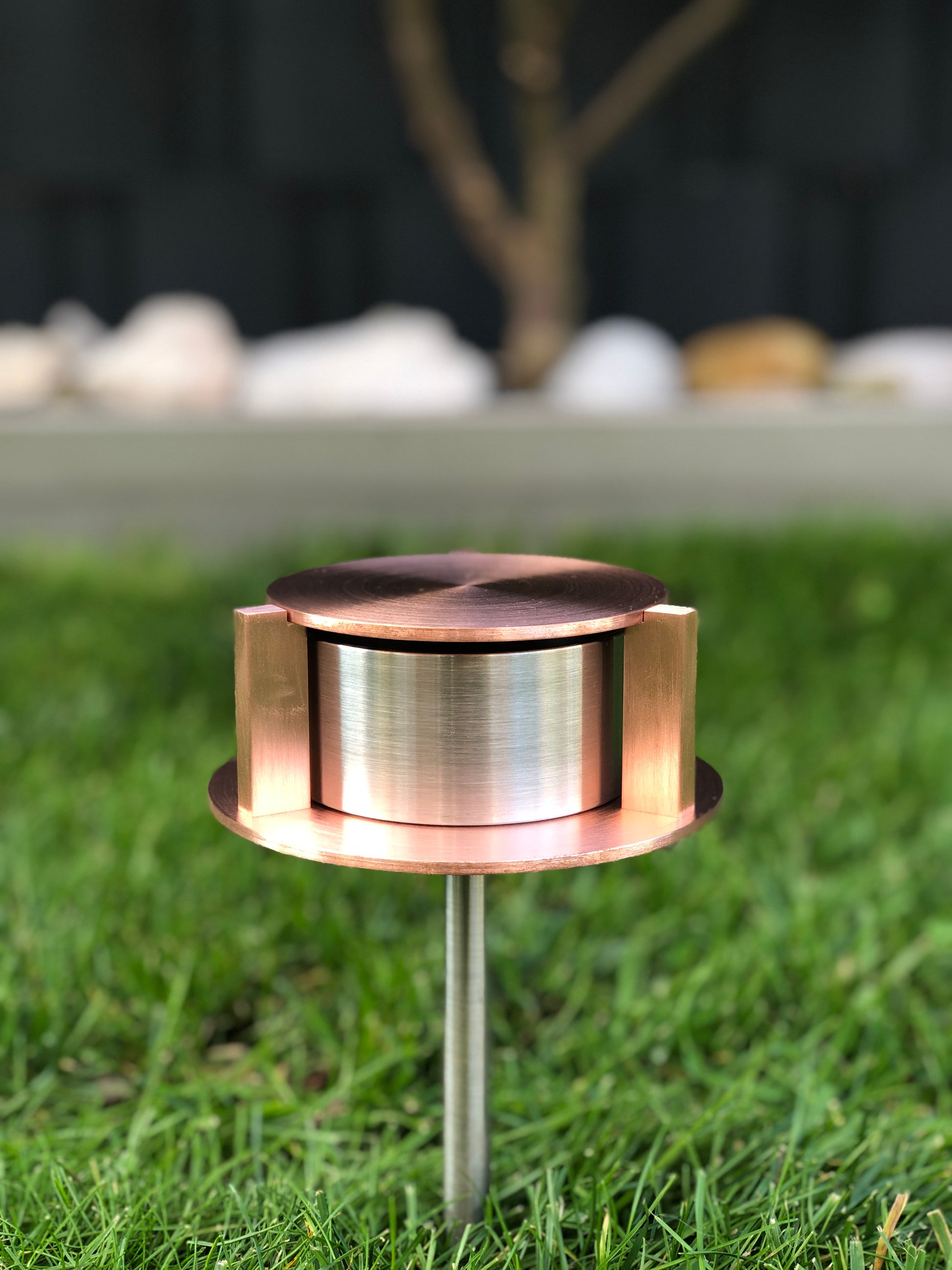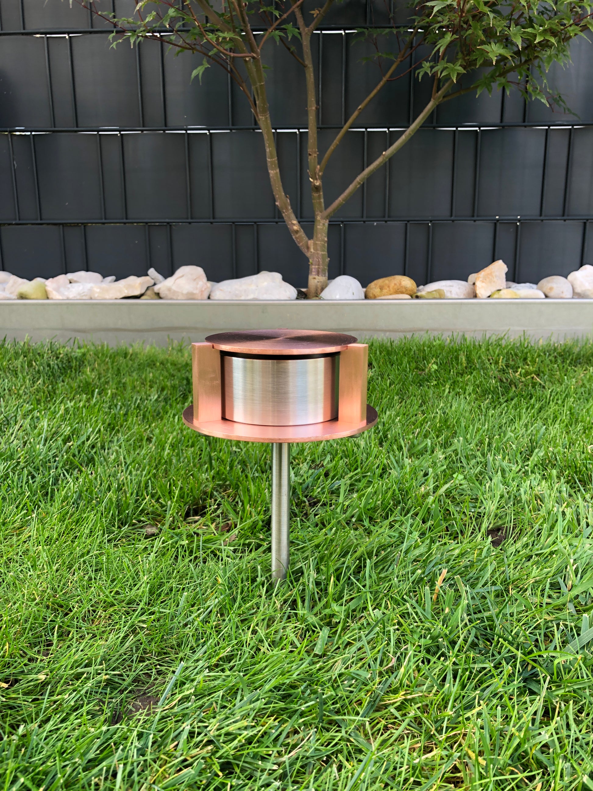 Weihwasserkessel aus Kupfer und Edelstahl mit Erdspieß W8GSK
