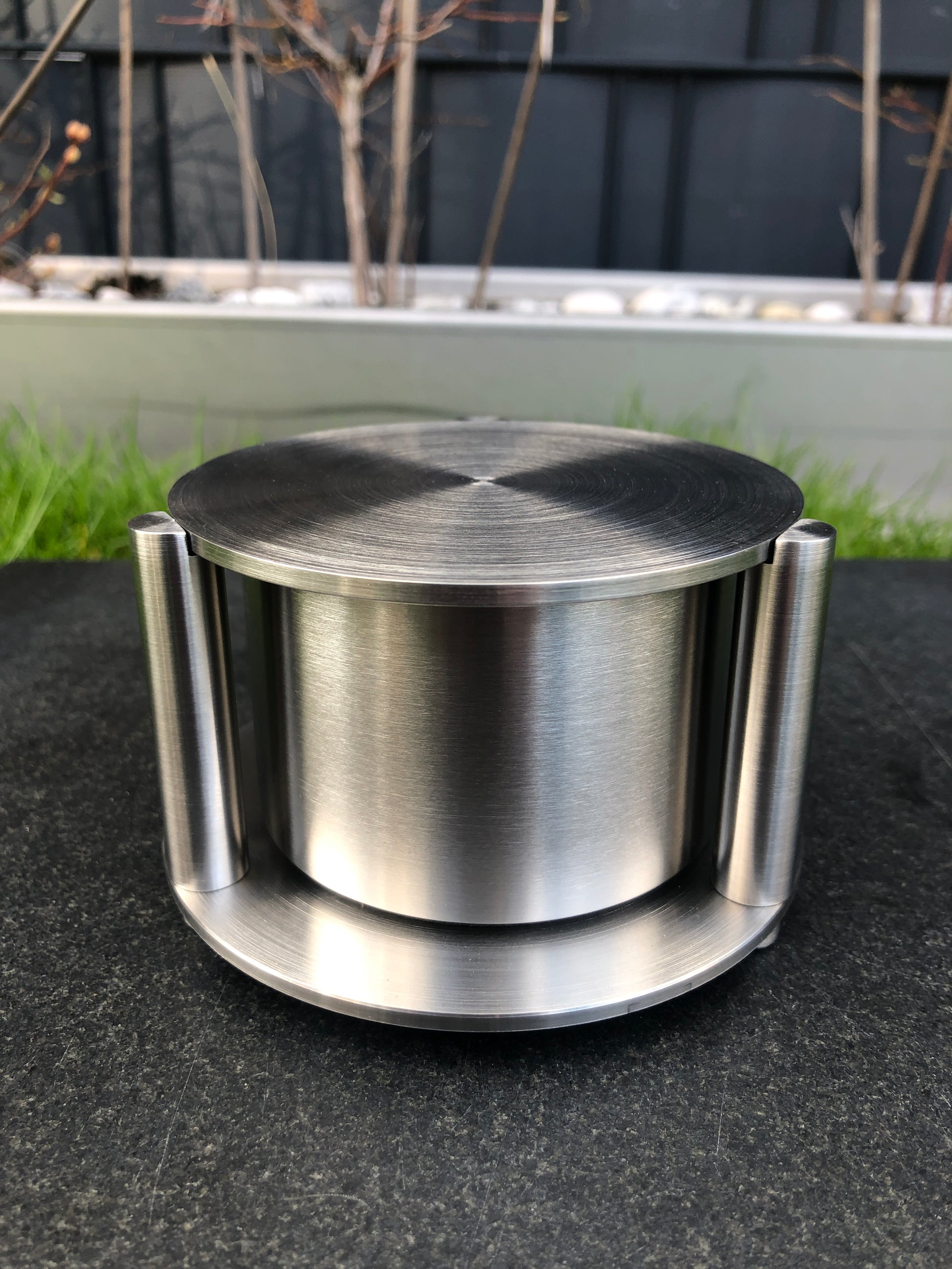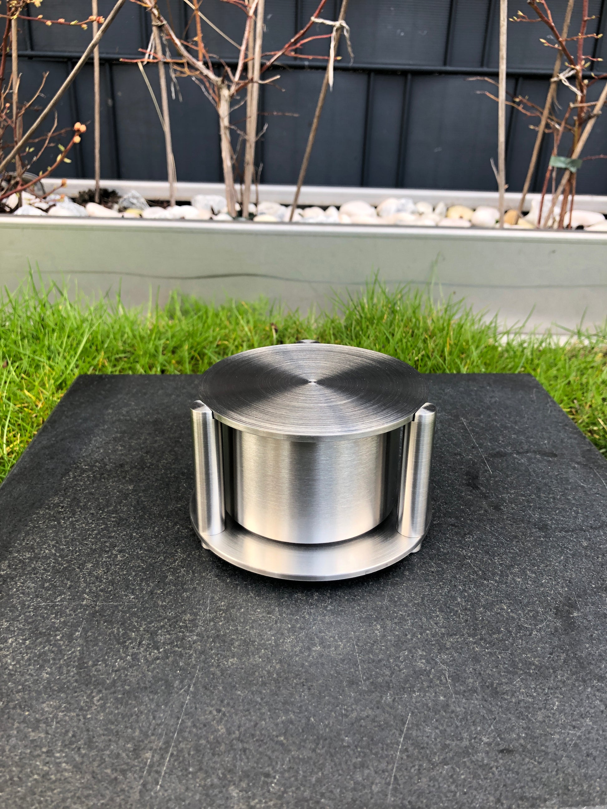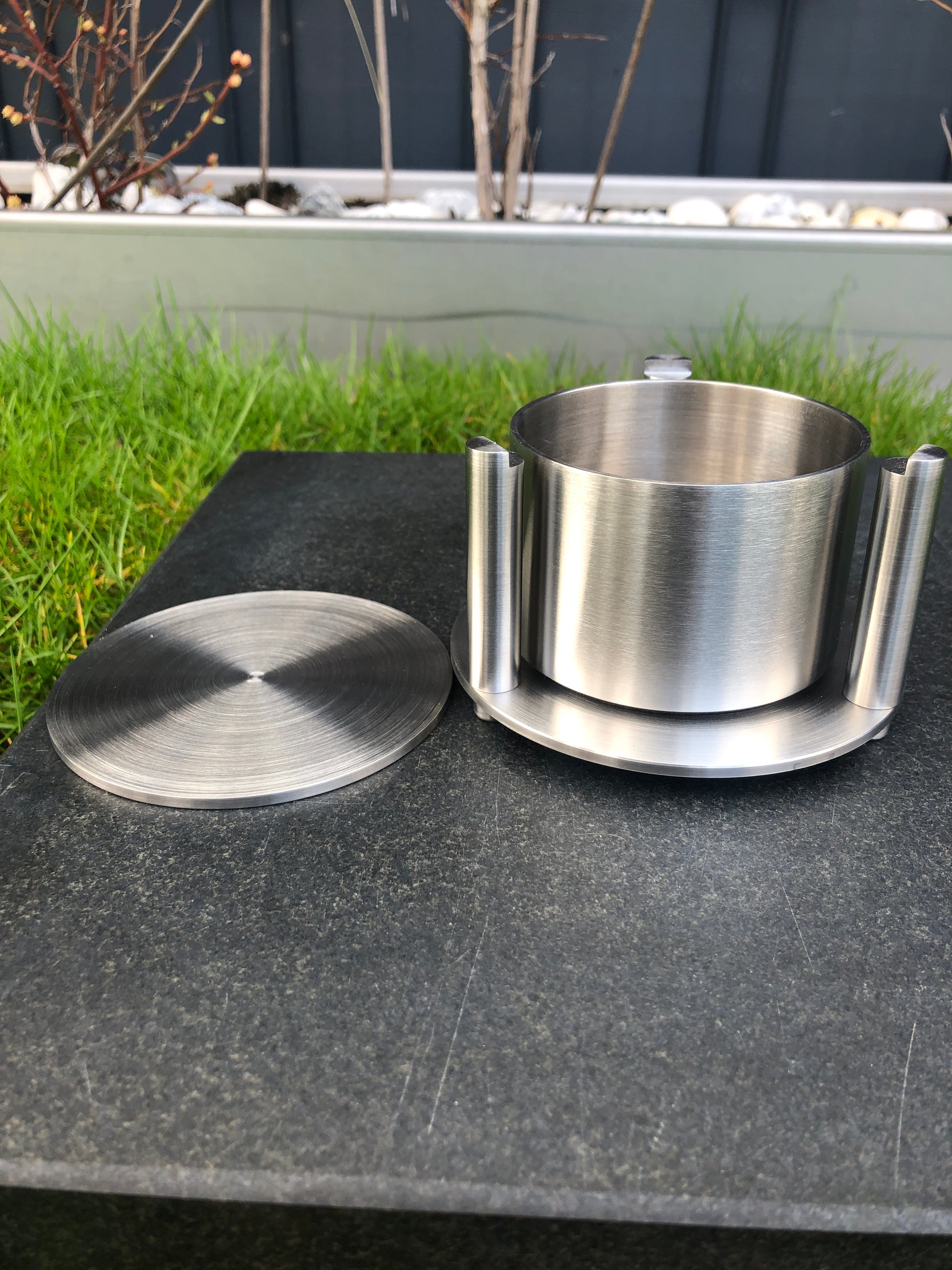 Dieser Weihwasserkessel wird aus ausschließlich hochwertigem Edelstahl in Handarbeit gefertigt. Durch die Fertigung aus Edelstahl wiedersteht dieser Kessel jeden Witterungseinfluss. Auf Wunsch kann der wertvolle Grabschmuck mit Hilfe von Schrauben oder Gewindestiften fest und diebstahlsicher mit einem geeigneten Untergrund verschraubt werden.